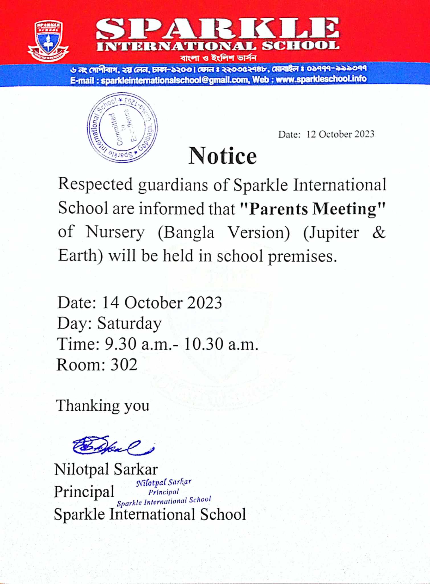 Parents Meeting 2023_Nursery (Bangla Version) Published on Wednesday, October 11, 2023
