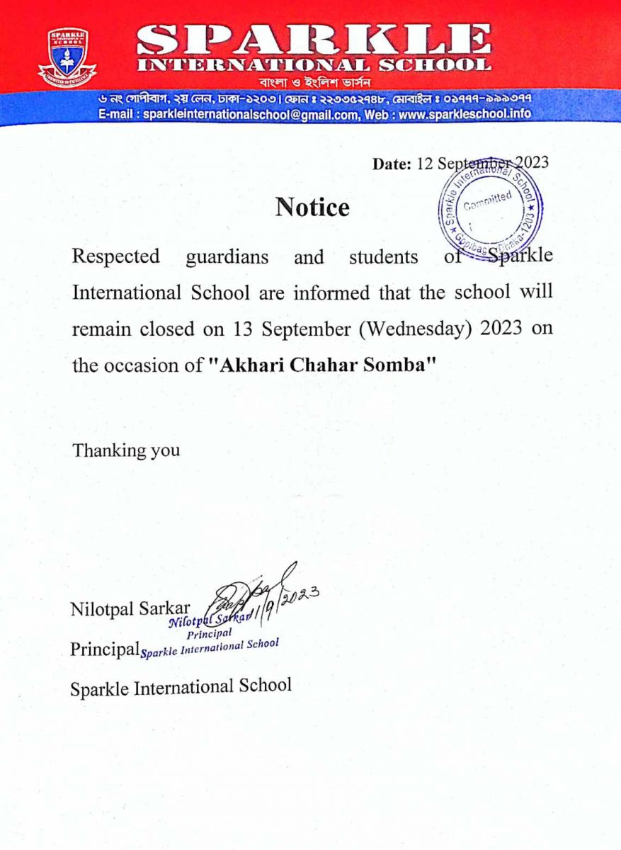 আখেরী চাহা সোম্বা ২০২৩ নোটিশ Published on Tuesday, September 12, 2023