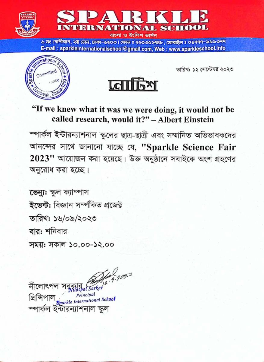 Sparkle Science Fair 2023 Notice Published on Tuesday, September 12, 2023