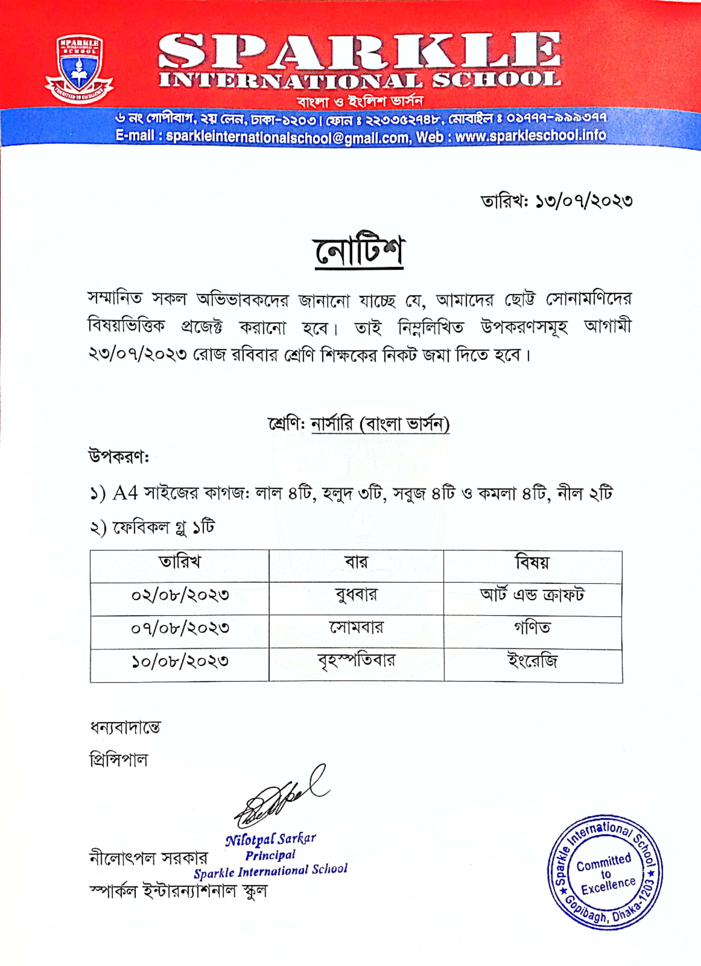 B.V- Nursery- Project Notice- Summer-2023 Published on Thursday, July 13, 2023