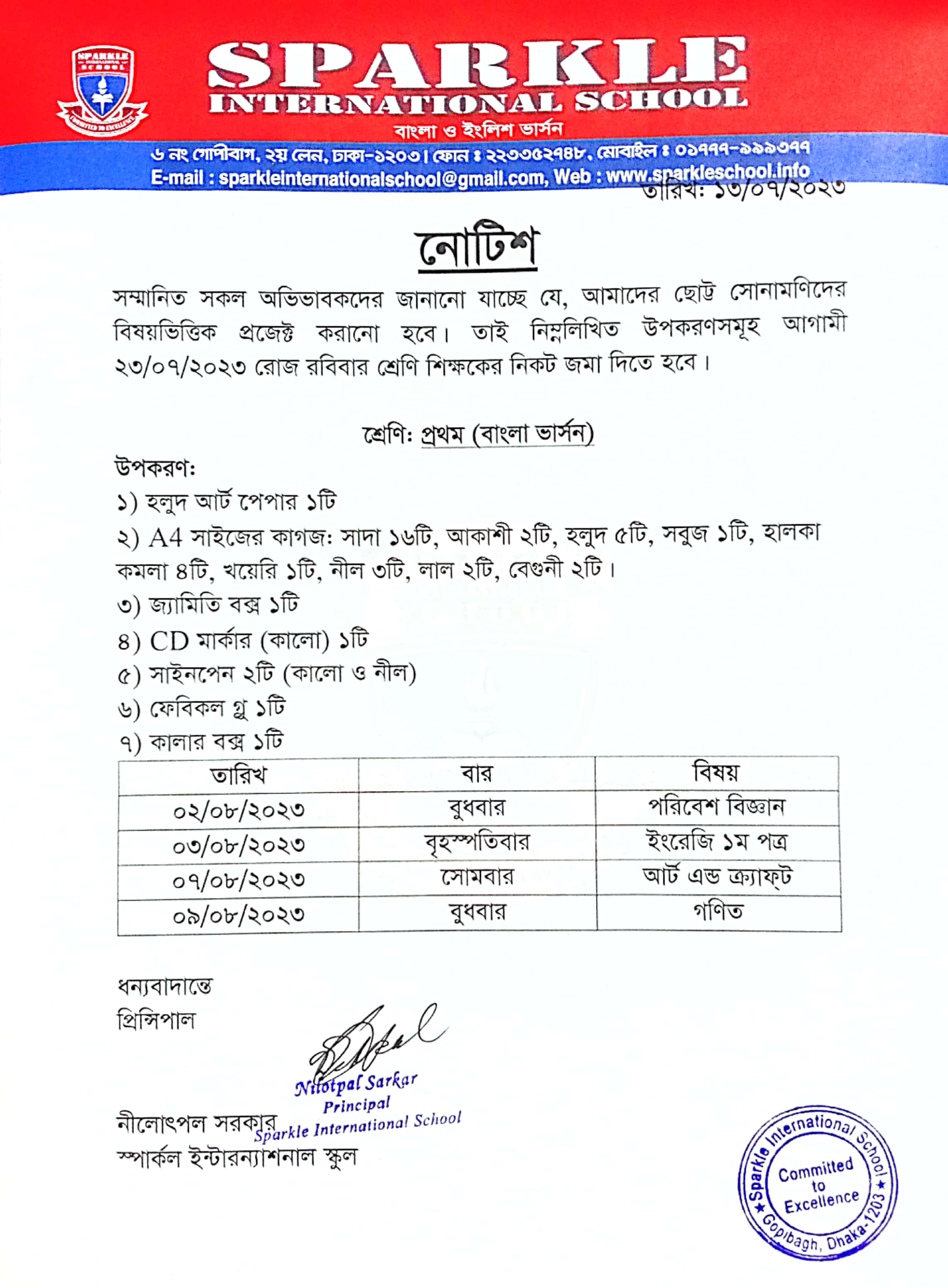 B.V- One- Project Notice- Summer-2023 Published on Thursday, July 13, 2023