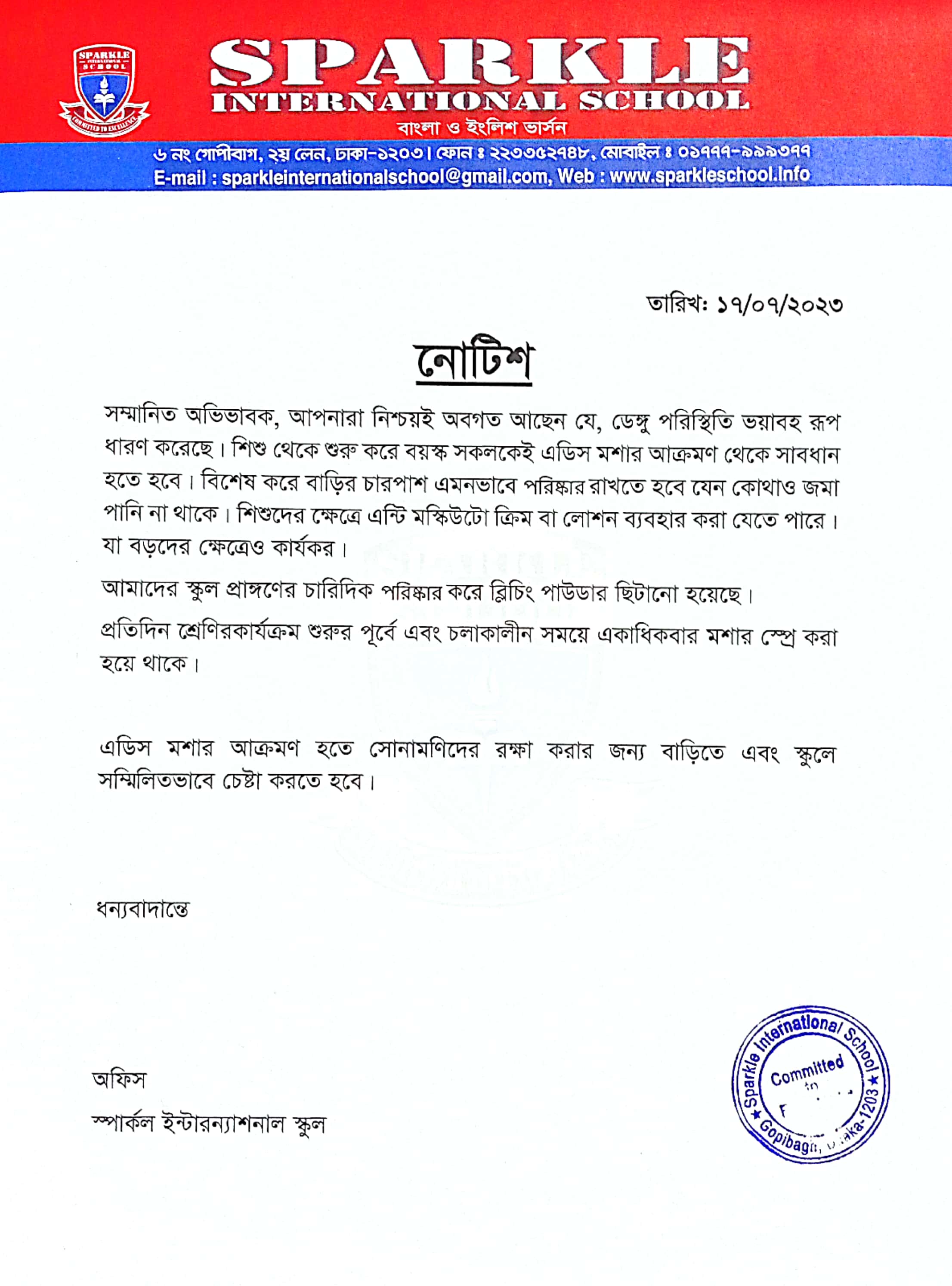 ডেঙ্গু নোটিশ Published on Monday, July 17, 2023