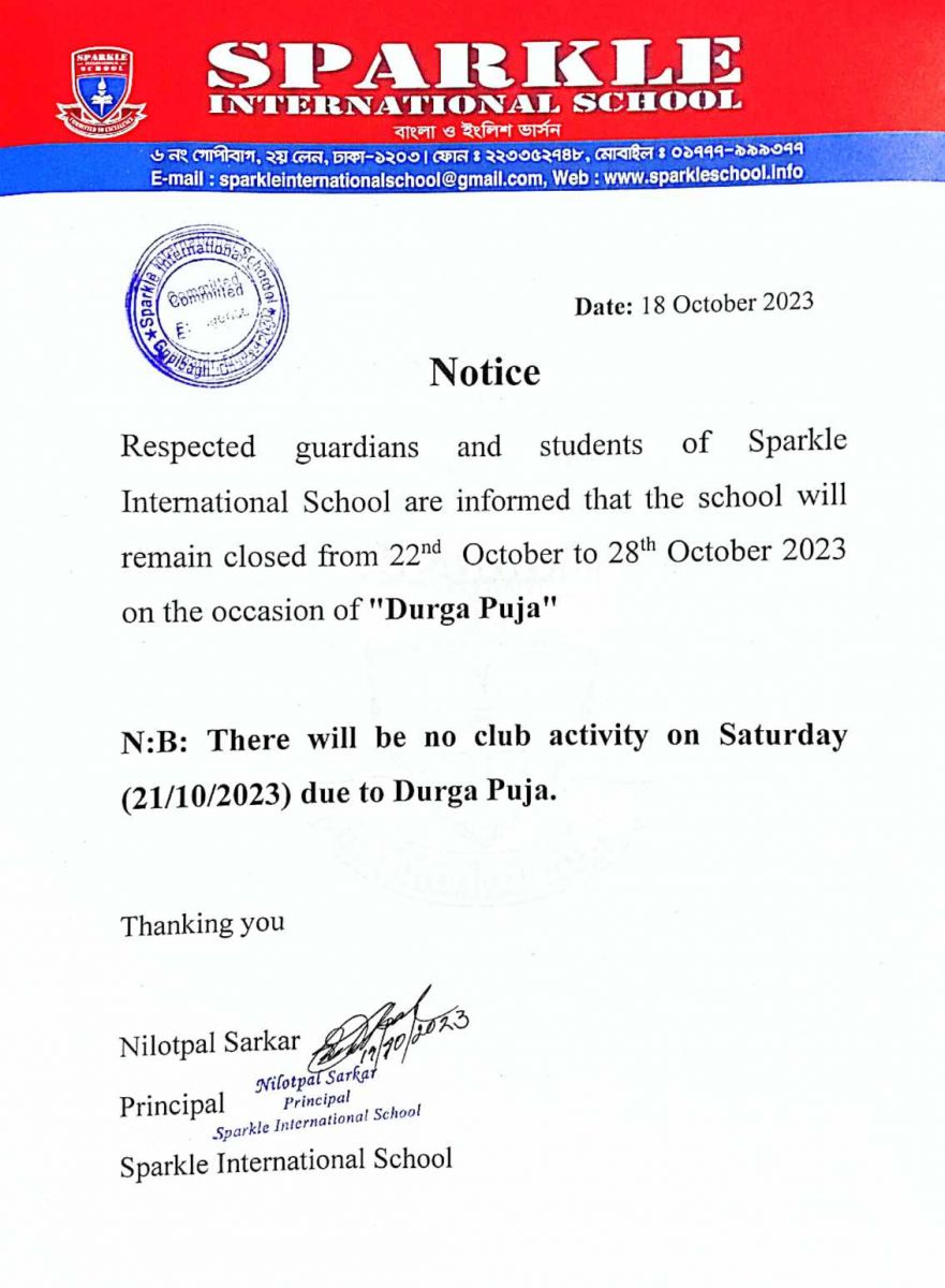 Durga Puja 2023 Notice Published on Thursday, October 19, 2023