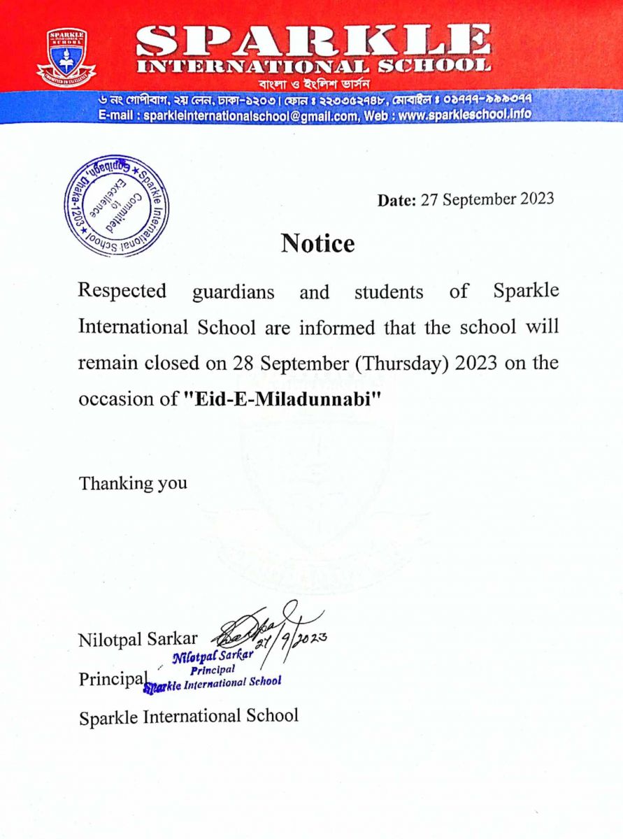 Eid-E-Miladunnabi 2023 Notice Published on Wednesday, September 27, 2023