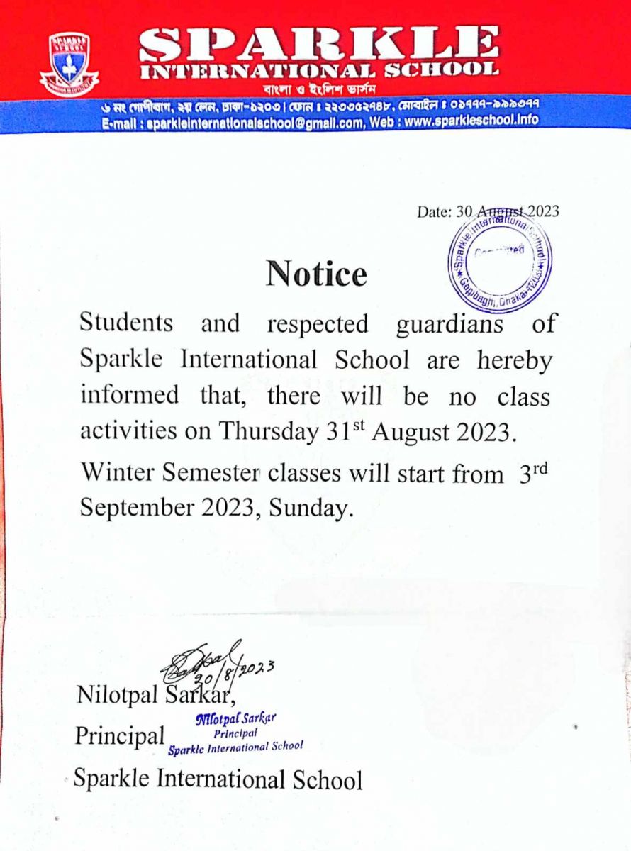Notice for Winter Semester Class Published on Wednesday, August 30, 2023