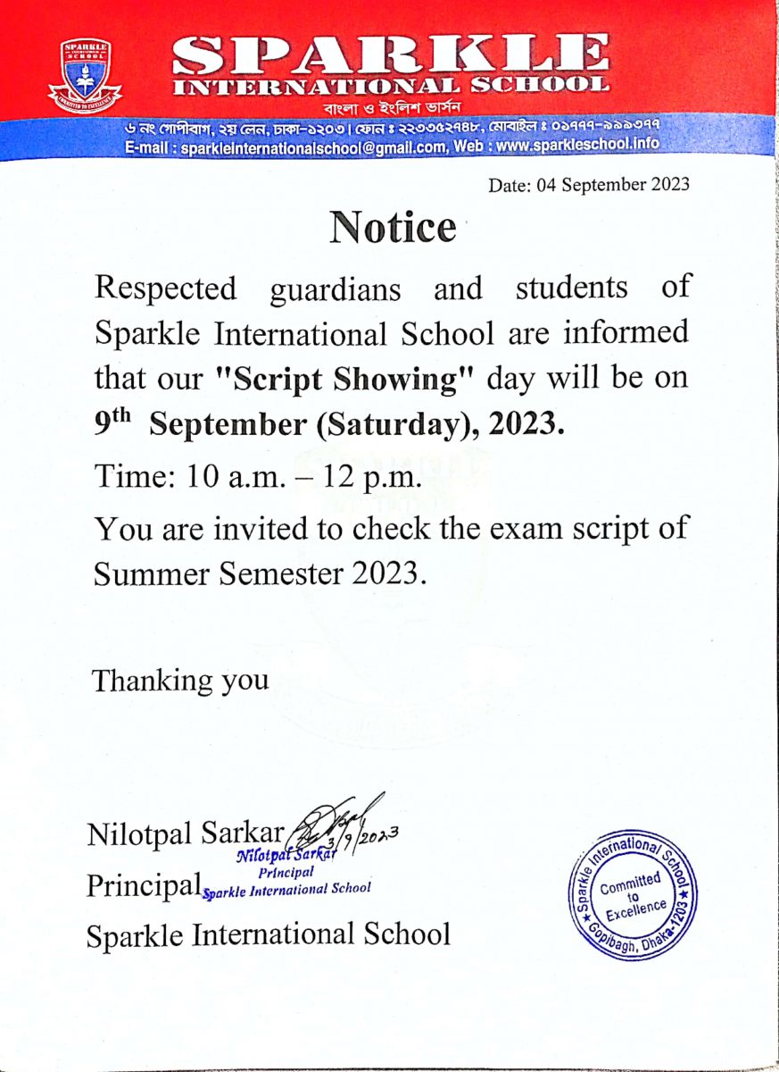 Script Showing Day for Summer 2023 Published on Sunday, September 3, 2023