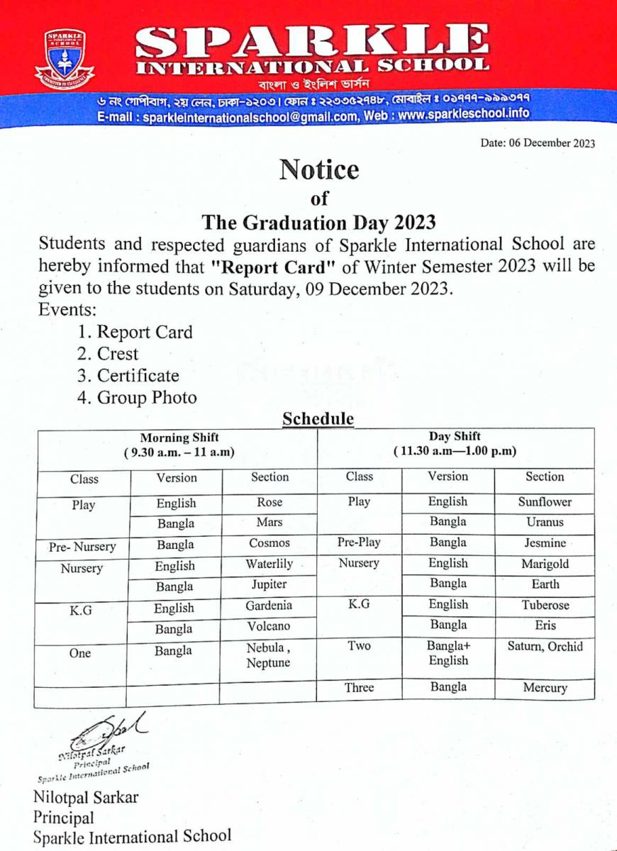 Note of The Graduation Day- 2023 Published on Wednesday, December 6, 2023